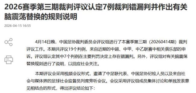 中国足协裁委会认定国安队提出的三个申诉均判罚正确 评议组公布详细解读 关键词: 2026-04-16 08:18:39  北晚在线 4月15日,中国足协裁判委员会评议组公布了本赛季第三期(20260414期)裁判评议工作。本期共评议了19个判例,其中7个判例在主要判罚决定上存在错漏判。北京国安俱乐部提出的三个申诉均被认定判罚正确。这三个申诉都发生在国安队与成都蓉城队的比赛中。具体包括:比赛第14分钟,成都队员铲抢国安队员,裁判员判罚成都队球员犯规并出示黄牌;比赛第27分钟,成都队球员与国安队球员争抢球,裁判员判成都队球员犯规,未出示红黄牌;比赛第84分钟,成都队进球,裁判员判进球有效。针对第一个申诉,评议组认为成都队球员铲球时主要力度和速度在其左脚,而右脚与国安队员的接触属于鲁莽犯规,不构成严重犯规。第二个申诉中,评议组认为成都队球员左脚鞋钉踩到国安队球员脚踝略靠上部分,构成鲁莽犯规,应出示黄牌,但不构成严重犯规,不应出示红牌。第三个申诉中,评议组根据赛事官方转播视频以及VAR查看视频,无法清晰证明球在接触成都队进球球员时是否与其手臂有接触,因此支持临场裁判员作出的不是手球犯规、进球有效的决定。评议组还表示,在无清晰证据的情况下,VAR未介入是正确的。 (责任编辑:zx0176)